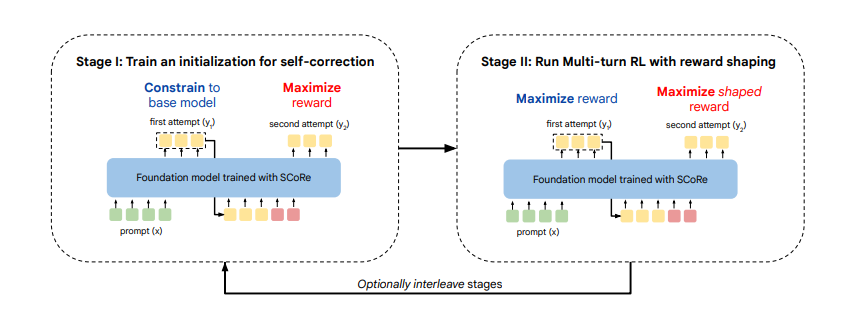 In the second stage, the model is fine-tuned using a reward system that encourages self-correction. By providing positive reinforcement for successful corrections, the model learns to prioritize improving its responses.
